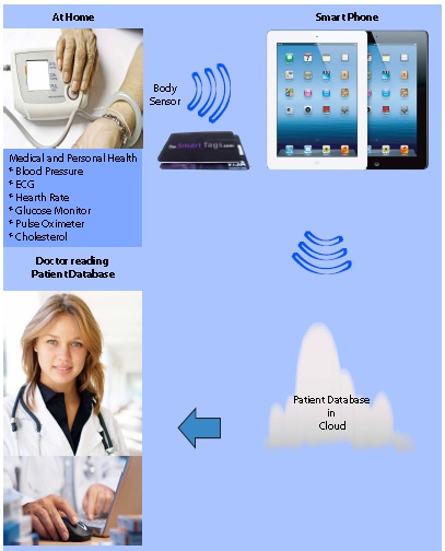 Our innovative solution can alleviate the problem. By embedding a wireless device into medical equipment, the device can read health information from the patient and seamlessly transfer the data onto smartphones and cloud server.